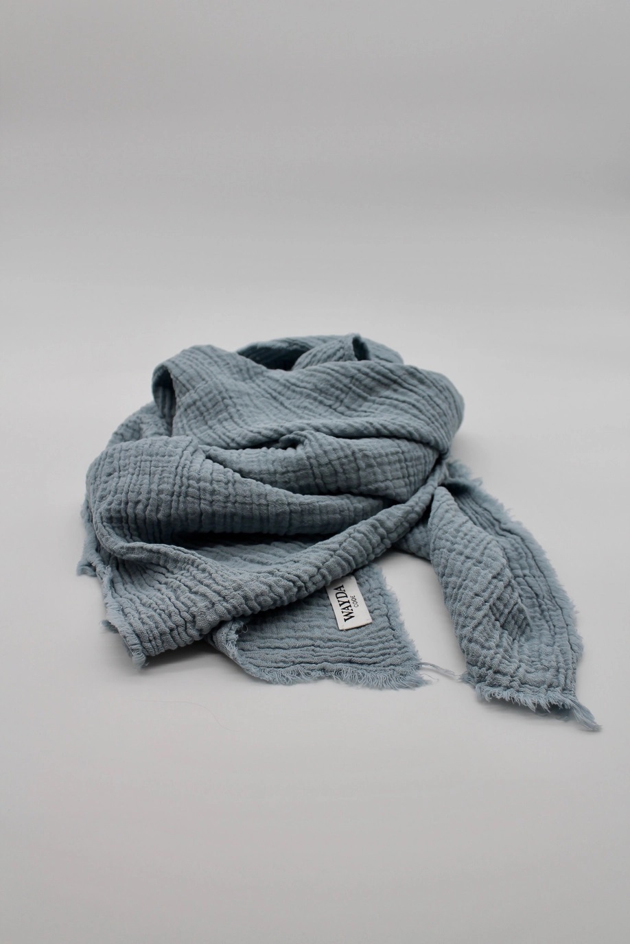 Stil WAYDA bomullsmuslinscarf är superbekväm att bära. Den är designad för att bli en omedelbar favorit för din mångsidiga vardagsstil. Det är en "alla fyra årstider" produkt, gjord för att delas och älskas. Muslinbomullsblandningen blir mjukare och mjukare med tiden.