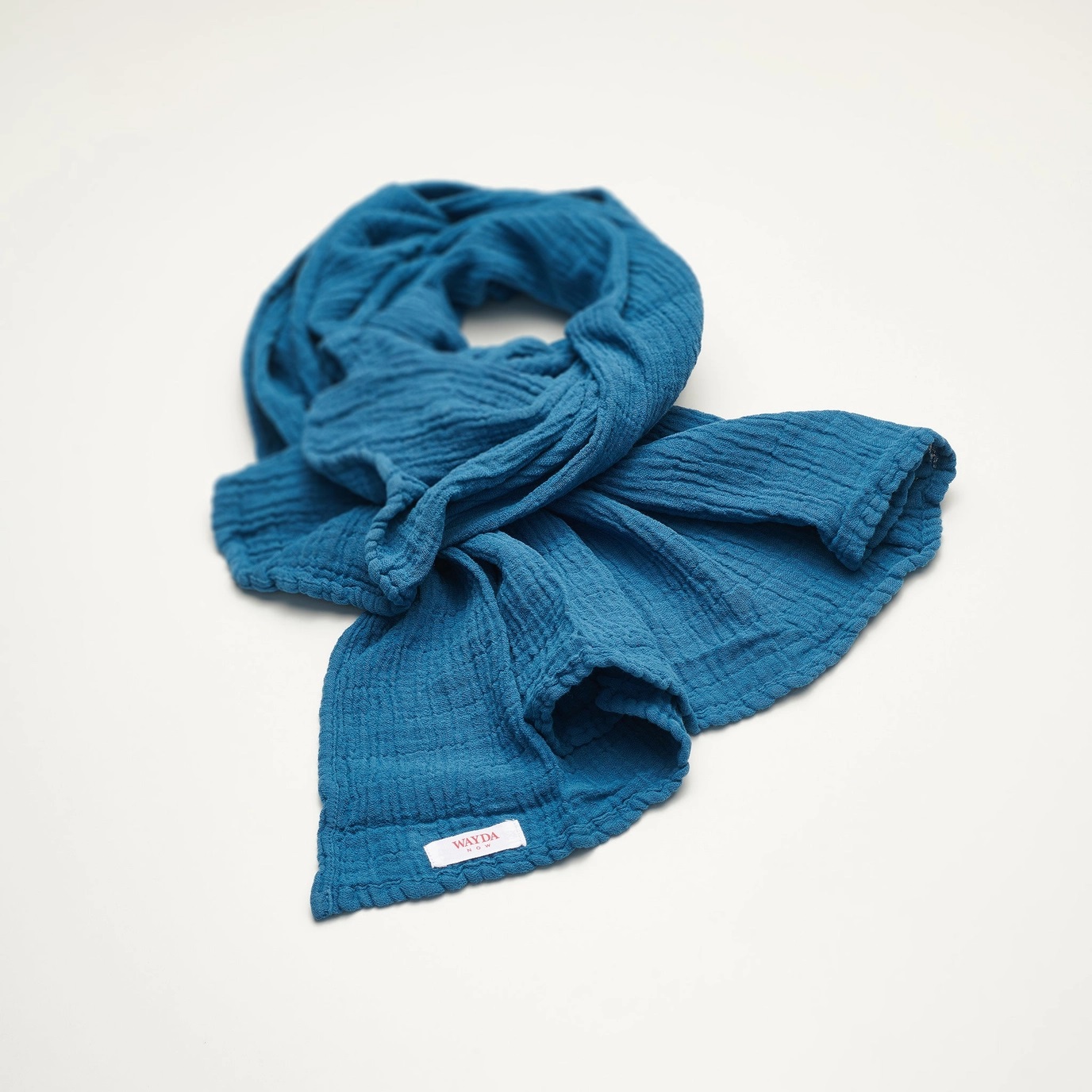 Stil WAYDA bomullsmuslinscarf är superbekväm att bära. Den är designad för att bli en omedelbar favorit för din mångsidiga vardagsstil. Det är en "alla fyra årstider" produkt, gjord för att delas och älskas. Muslinbomullsblandningen blir mjukare och mjukare med tiden.