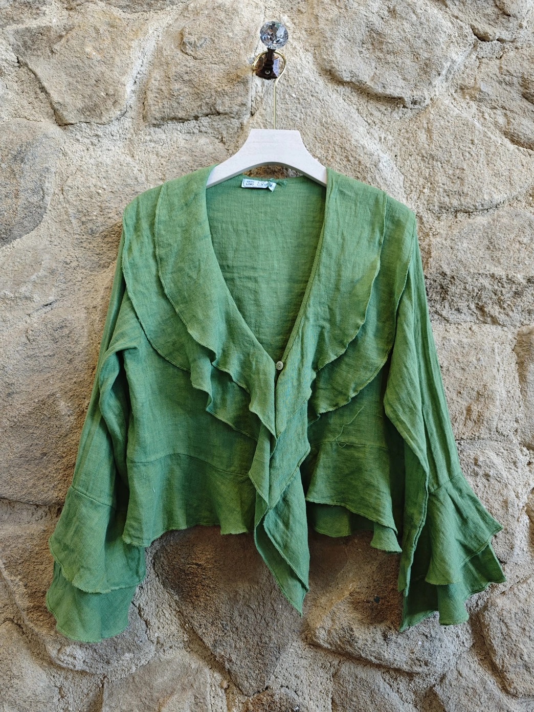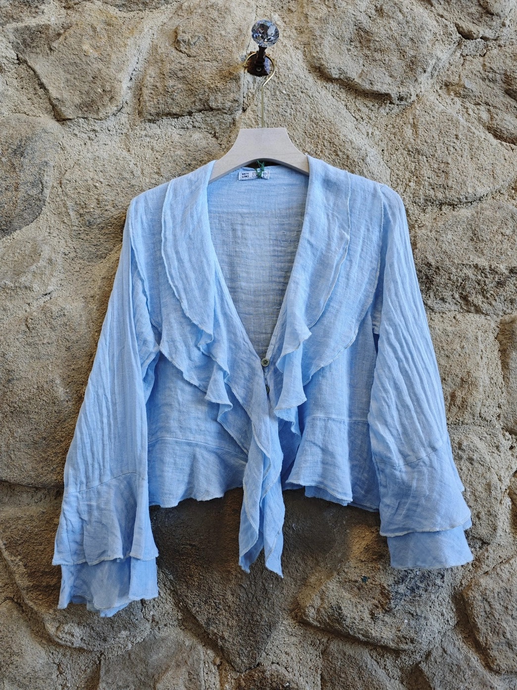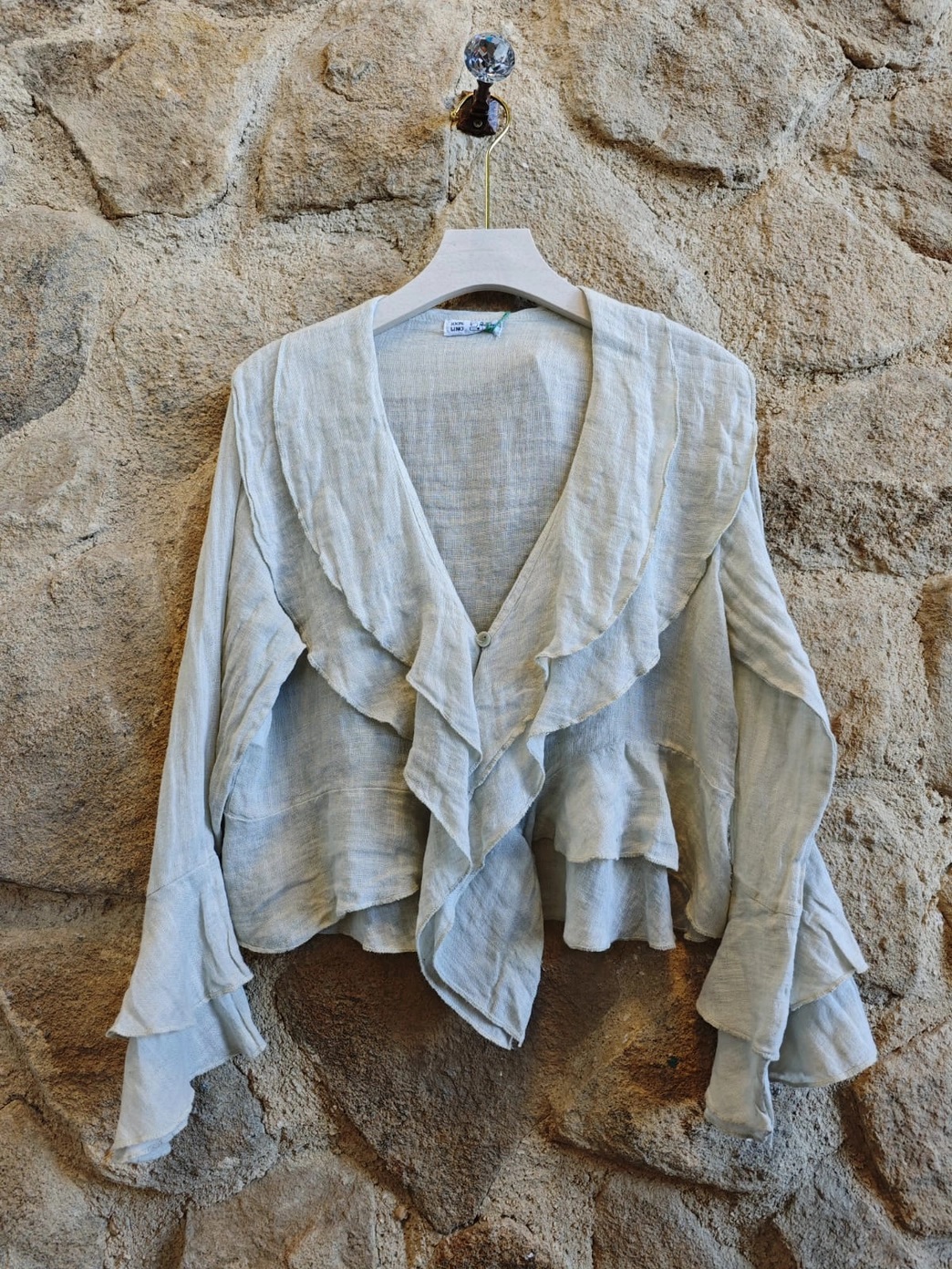 Vackra volanger och långa vida ärmar får du en perfekt mix av avslappnad elegans och feminin känsla.
