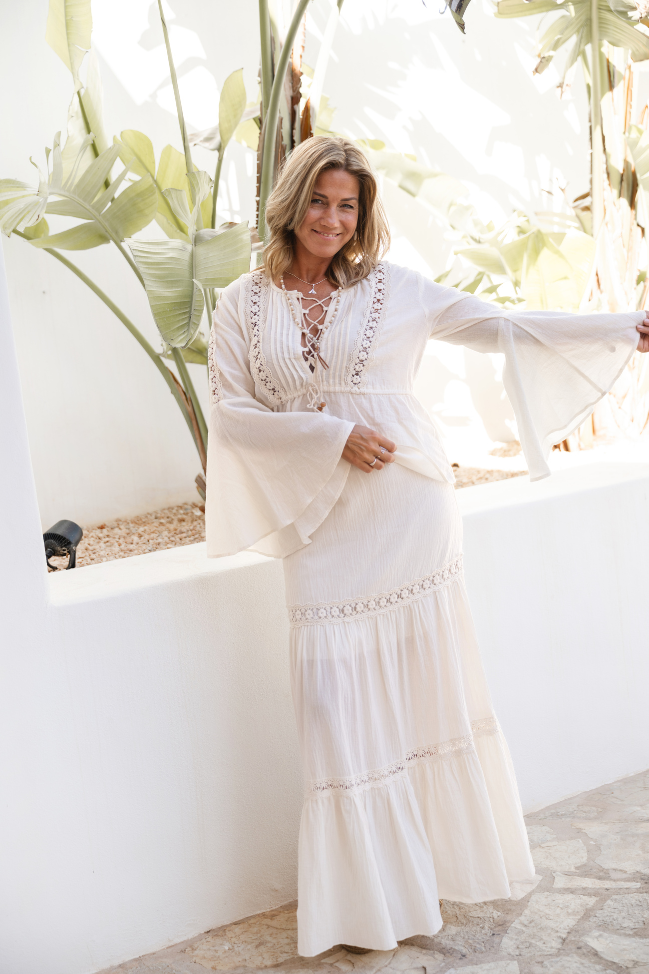 • Utsvängda ärmar med spets för en bohemisk känsla