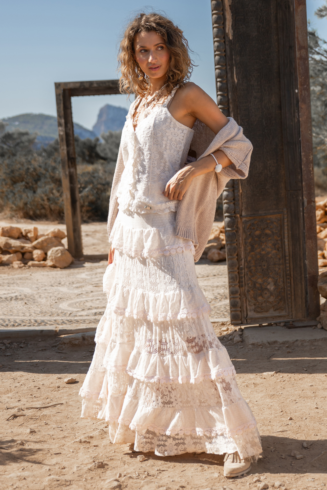 Lång Kjol Lace Cream från Romantic Soul-kollektionen av Isla Ibiza Bonita är en drömmig spetskjol som kombinerar romantik med en avslappnad boho-känsla. Den mjuka krämfärgen ger ett ljust och elegant uttryck, perfekt för både tidig vår och sommarens ljusa dagar. Den rika spetsen och de exklusiva detaljerna skapar en lyxig look med en tydlig vintage-inspirerad 70-talskänsla.