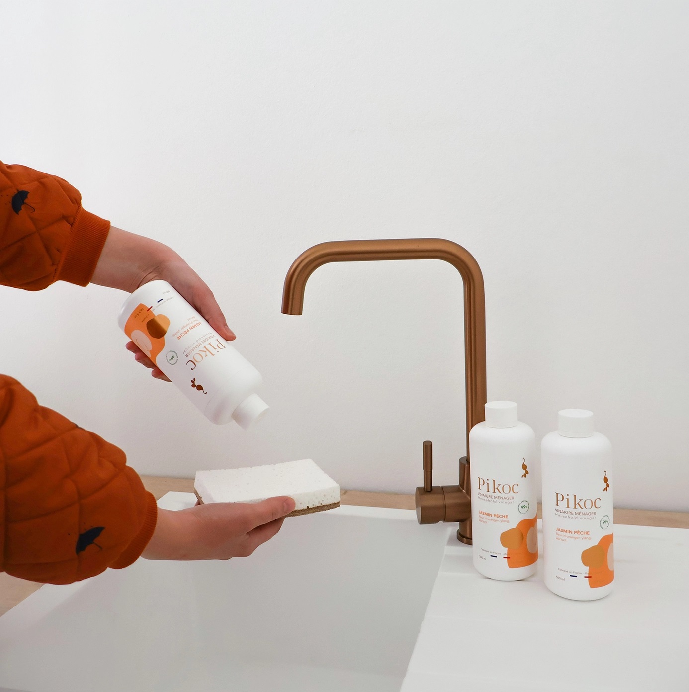 Med vår doftade hushållsättika, droppa några droppar på en svamp och använd på handfat, toaletter, badkar, spishällar och bänkskivor för att njuta av doften.