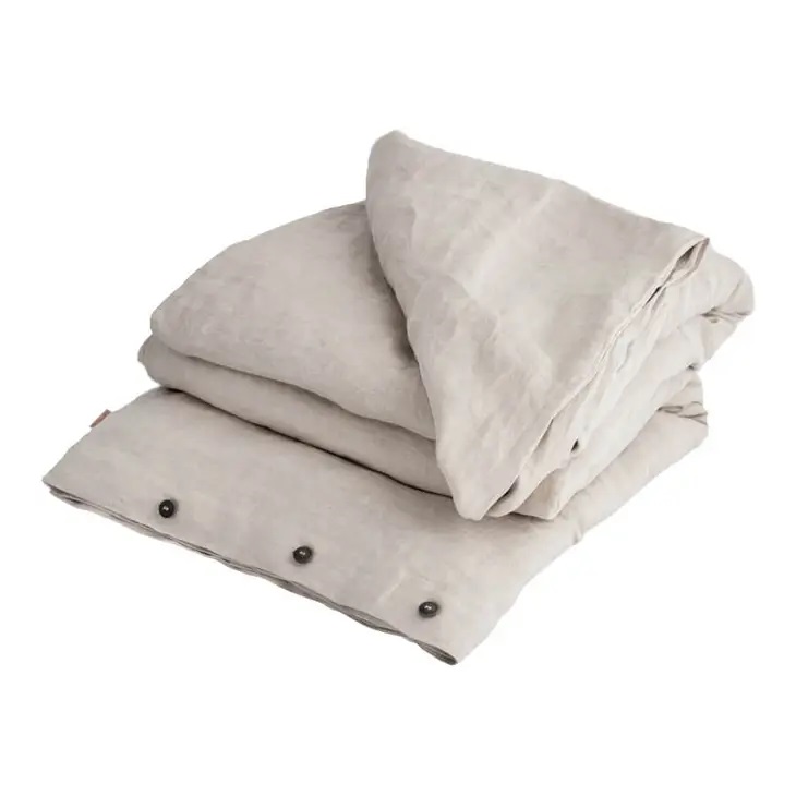 De övre hörnen på påslakanet har öppningar för händer för att underlätta filtens layout. Nedre kanten är öppen; Hörnsömmar är den svagaste punkten på påslakanet, varför de medvetet har utelämnats och ersatts med vackra, ekologiska återvunna pappersbaserade knappar som sträcker sig över hela ändsträckan.
