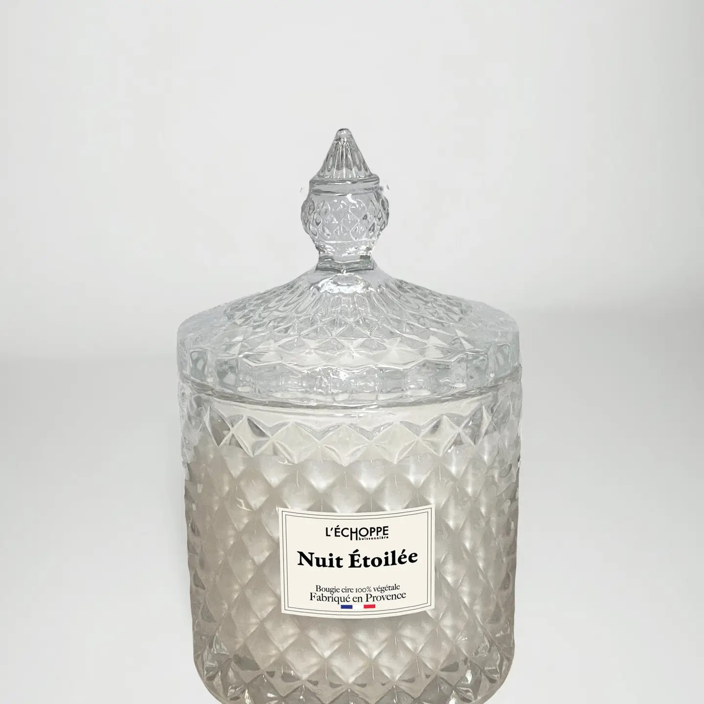 Låt ditt hem fyllas av en sofistikerad doftupplevelse från Grasse – parfymens huvudstad. BONBONNIÈRE DÔME är ett handgjort doftljus i elegant glasburk, tillverkat i Frankrike med 100 % vegetabiliskt sojavax och bomullsveke för en ren, jämn brinntid.