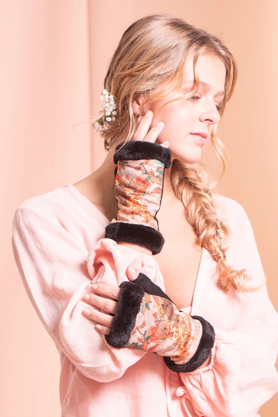 De tryckta BROKANTE-vantarna förenar konstnärlig elegans med effektiv värmeisolering – skapade för dig som vill möta kylan med stil.